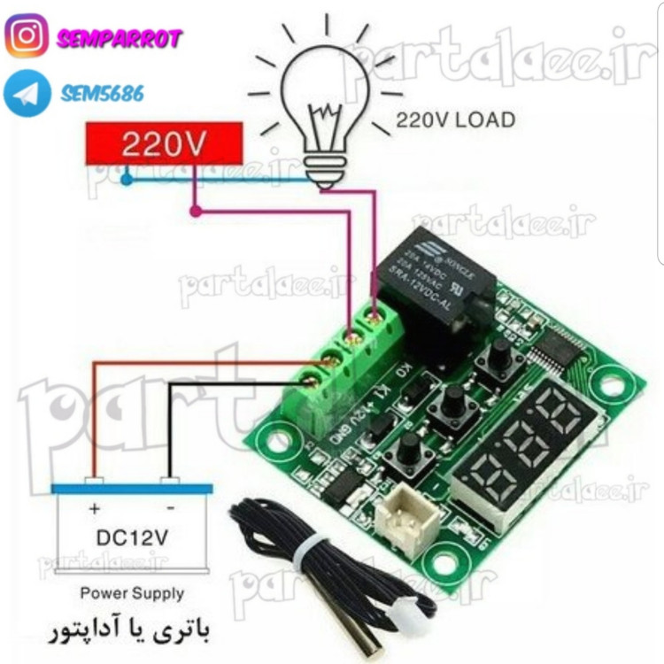 ترموستات دما دیجیتال w1209 سنسور دما ماژول دما