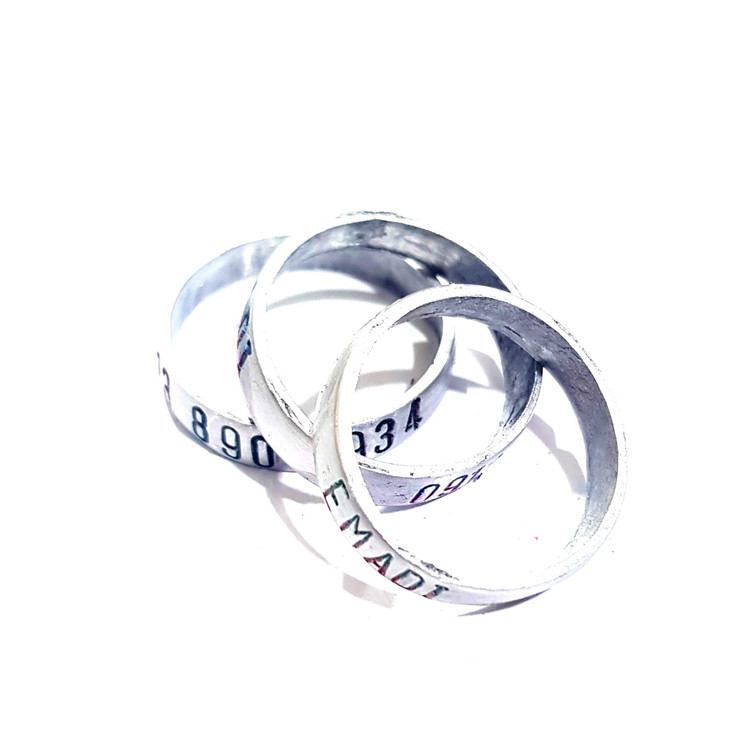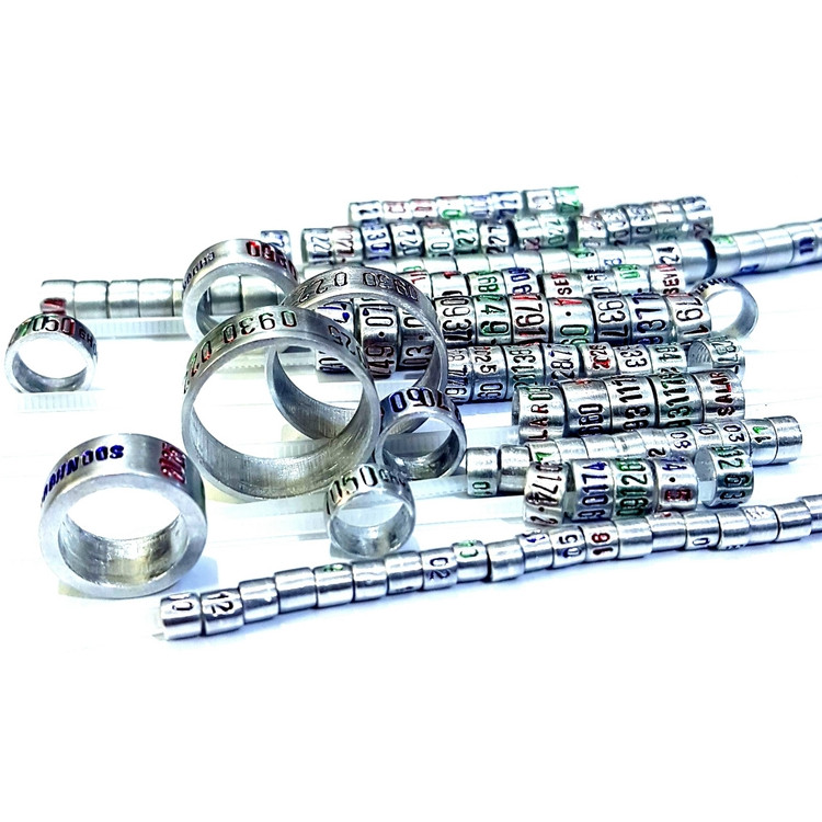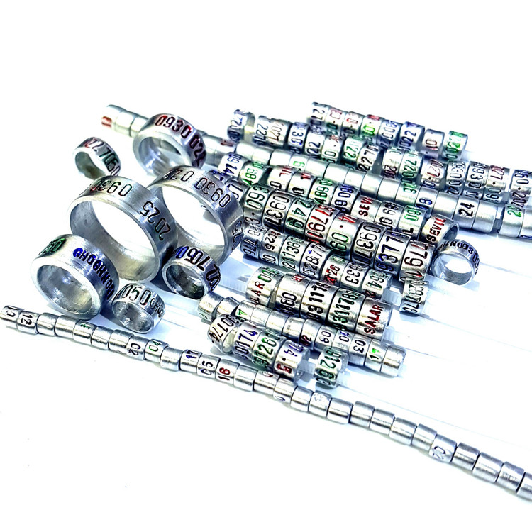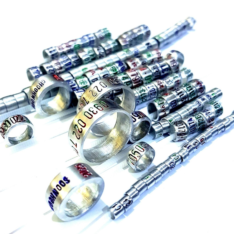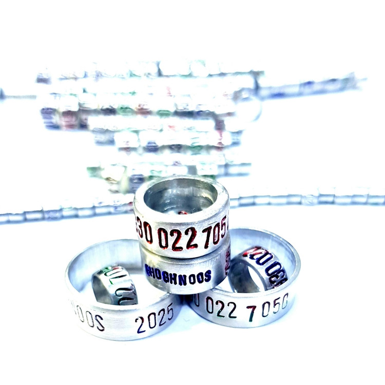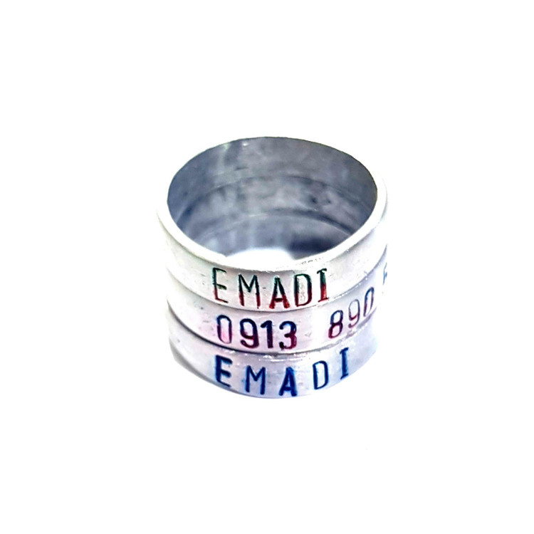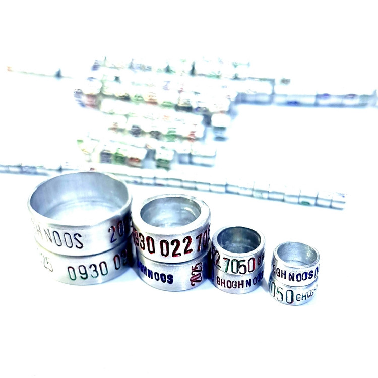حلقه آلومینیومی مناسب پای مرغ و خروس لاری یا مرغ و خروس زینتی با حک شماره موبایل و تاریخ و اسم روی حلقه