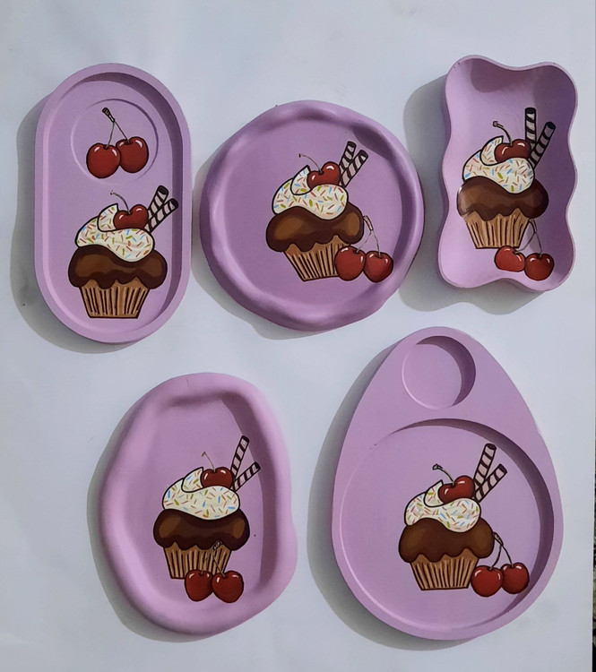 ست 5 تیکه سنگ مصنوعی طرح کیک آلبالو لوبیا چیتی